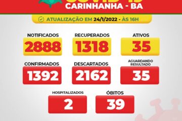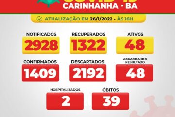 Carinhanha confirma três novos casos de Covid-19 nas últimas 24 horas