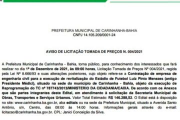 Prefeitura de Carinhanha publica licitação para modernização do Estádio Luizão