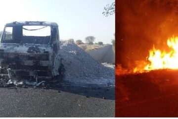 Caminhão carregado com carvão pega fogo na BA-161 em Carinhanha
