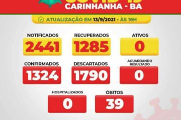 Nenhum caso de Covid-19 é registrado em Carinhanha nas últimas 24 horas