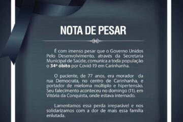 Carinhanha registra trigésima quarta morte por Covid-19 e 4 casos nas últimas 24 horas