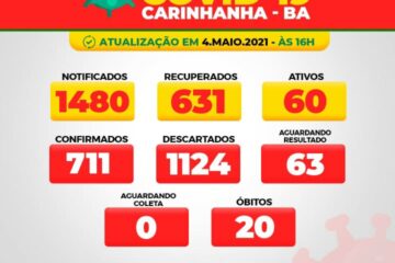 Carinhanha registra 4 casos da Covid-19 nas últimas 24 horas