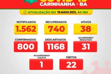 Carinhanha chega a 800 casos confirmados de Covid-19