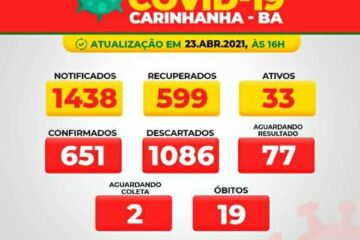 Carinhanha registra 3 casos de Covid-19 nas últimas 24 horas