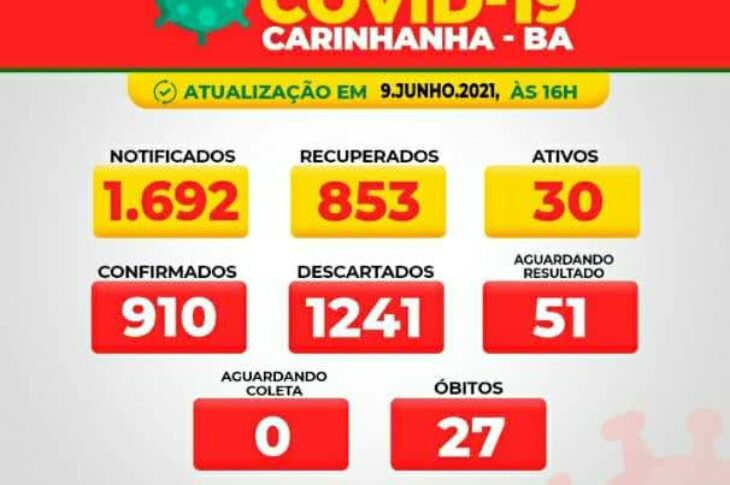 Nenhum caso de Covid-19 foi registrado nas últimas 24 horas em Carinhanha