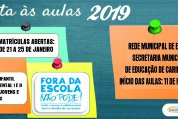 Carinhanha: matrículas para 2019 na Rede Municipal começam nesta segunda-feira