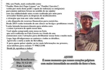 Carinhanha: familiares realizam evento beneficente para custear tratamento de mototaxista no dia 31 de dezembro