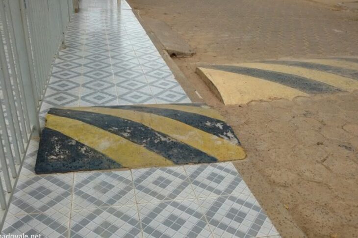 Quebra-molas irregular é construído em calçada na cidade Malhada