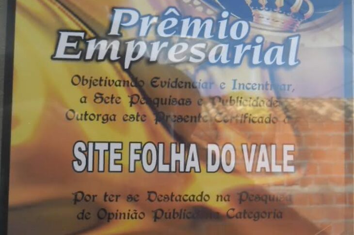 Portal Folha do Vale ganha prêmio destaque empresarial