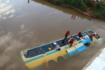 Ônibus que seguia de Floresta Azul para São Paulo cai de ponte na BR-116