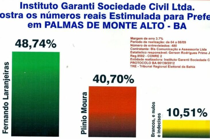 Nova pesquisa aponta Fernando Laranjeiras liderando em Palmas de Monte Alto