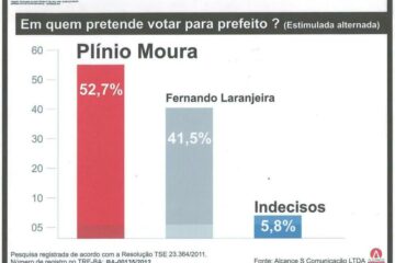Com 52,7% das intenções de votos, candidato do Plínio Moura lidera em Palmas de Monte Alto