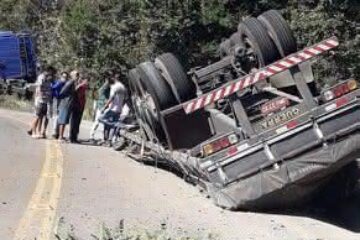 Carreta tomba na BA-611entre Brejinho das Ametistas e Caetité