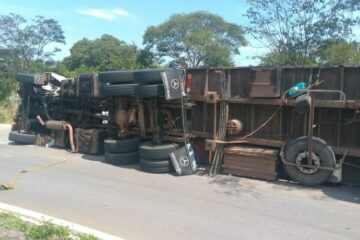 Carreta carregada com alumínio tomba na rotatória da BR-135 em Montalvânia