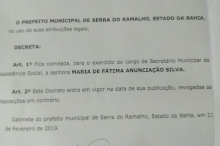 Prefeito de Serra do Ramalho nomeia mãe como secretária de Assistência Social