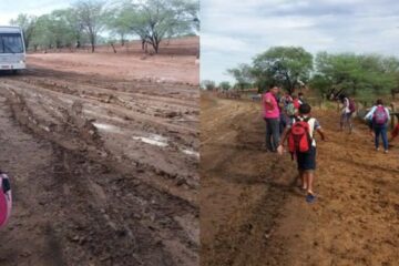 Descaso: ônibus escolar atola na vicinal BR-030 distrito de Pinga Fogo em Palmas de Monte Alto