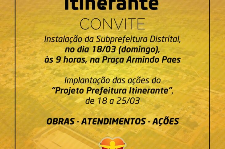 CONVITE:Inauguração da Subprefeitura Distrital e ações da Prefeitura Itinerante, no Distrito de Morrinhos