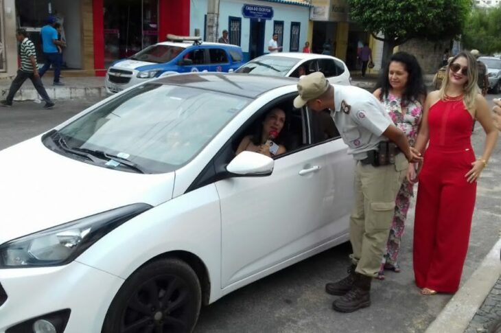 17º Batalhão de Guanambi e CDL distribuíram flores no trânsito