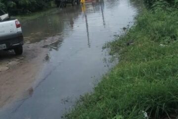 Prefeitura inicia trabalho para retirar água de chuva na Rua da Maçonaria em Carinhanha