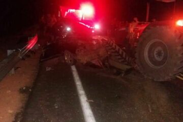 Acidente envolvendo trator e carro de passeio deixa três mortos da mesma família na BR-135 em Juvenília