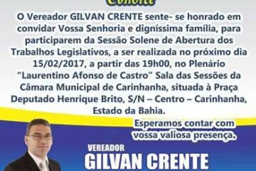 Vereador Gilvan Crente convida população par participar de Sessão Solene dia 15 de fevereiro