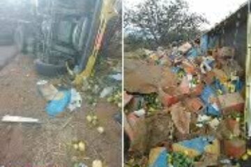 Caminhão carregado tomba na curva do cotovelo na BR-030 em Guanambi