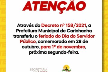 Prefeitura de Carinhanha transfere feriado do Dia do Servidor para próxima segunda