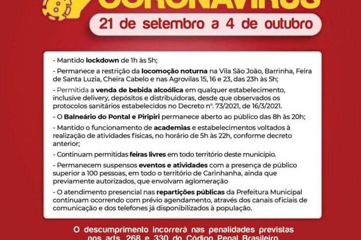 Prefeitura de Carinhanha renova decreto de medidas restritivas contra a Covid-19