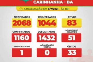 Carinhanha registra 21 novos casos de Covid-19 nas últimas 24 horas