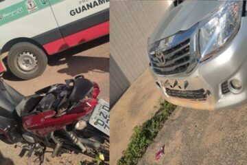 Mulher fica ferida em acidente envolvendo caminhonete e moto em Guanambi