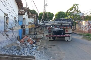 Motorista embriagado colide caminhão contra poste em Guanambi