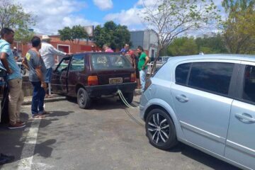 Carro bate em grade de proteção no canal da feira de Guanambi