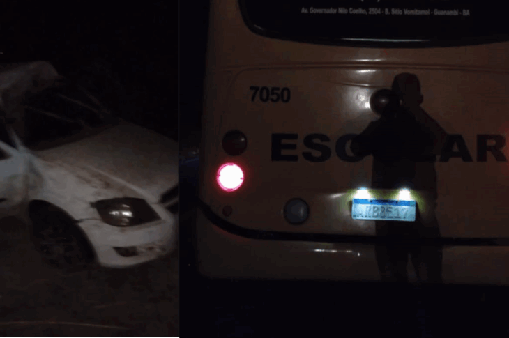 Motorista bate em lateral de ônibus durante ultrapassagem na BR-030, em Guanambi