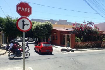 Colisão entre carro e moto deixa homem ferido no Centro de Guanambi