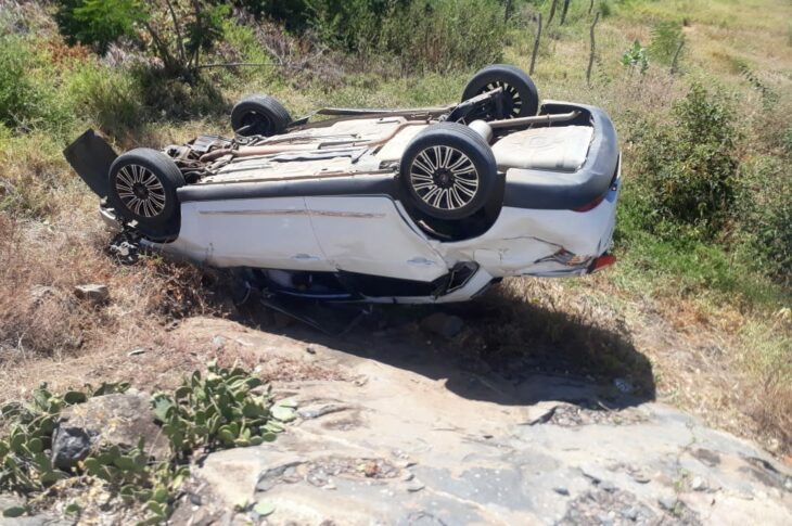 Carro capota e homem fica preso às ferragens na BR-030 em Guanambi