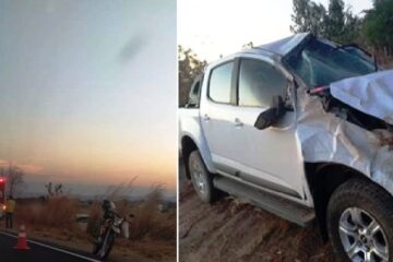 Duas pessoas ficam feridas após caminhonete capotar na BR-122 em Guanambi