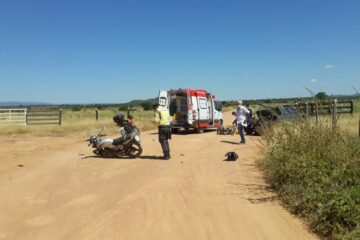 Colisão envolvendo carro e moto deixa duas pessoas feridas na zona rural de Guanambi