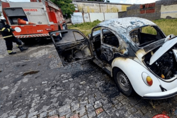 Militares controlam fogo em fusca na cidade de Guanambi