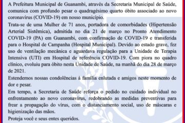 Guanambi registra quadragésimo segundo óbito por complicações da Covid-19