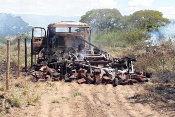 Caminhão bate em poste e pega fogo na zona rural de Guanambi