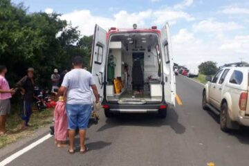 Casal fica ferido após moto ser atingida por carro na BR-030 em Guanambi