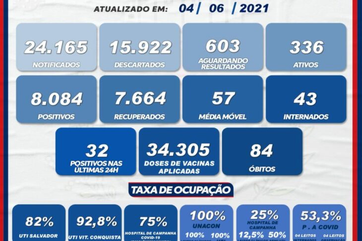 Guanambi registrou um óbito e 32 casos de Covid-19 nas últimas 24 horas