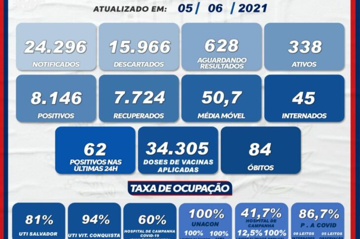 Guanambi registrou um óbito e 93 casos de Covid-19 nas últimas 24 horas