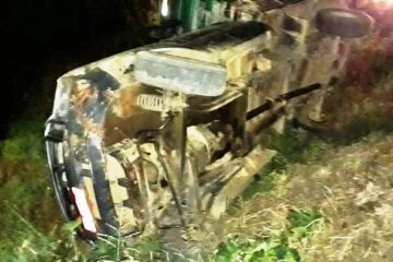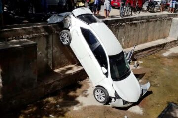 Guanambi: carro cai em canal da feira após ser atingido por outro veículo