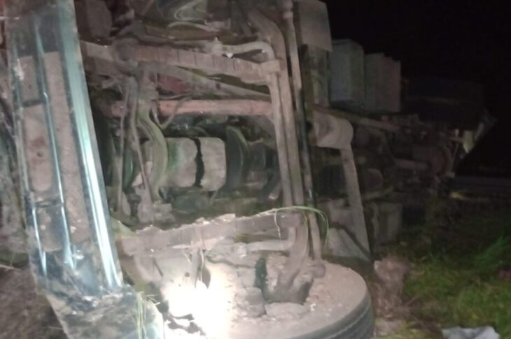 Motorista perde controle e carreta tomba na BR-030, em Guanambi