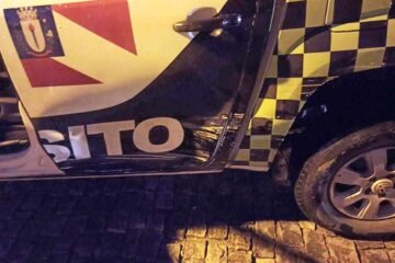 Motorista avança sinal de parada obrigatória e bate contra viatura da Smtran, em Guanambi
