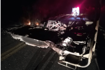 Caminhão-tanque tomba e pega fogo na BR-242 em Ibotirama