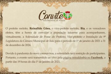 Posse do prefeito, vice-prefeito e vereadores de Iuiú será sem público e com transmissão on-line