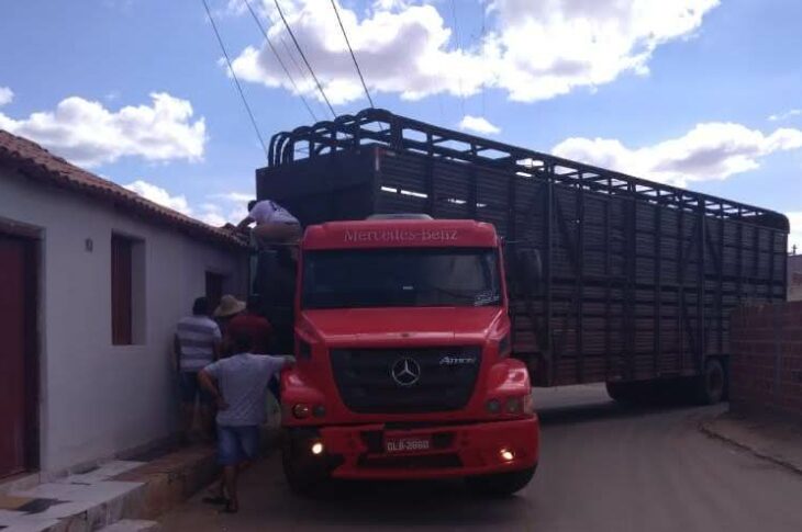 Caminhão fica entalado em casa na Rua Belo Horizonte em Iuiú
