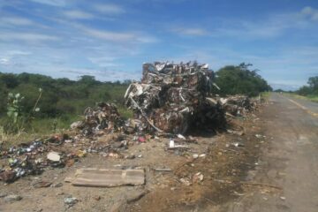 Carreta carregada com material reciclável vira na BR-030 em Malhada
